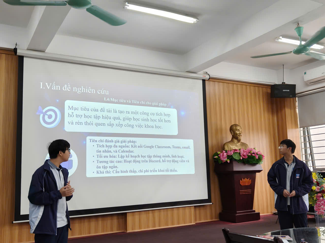 Mục tiêu của đề tài là xây dựng một công cụ có thể thay thế nhiều ứng dụng hỗ trợ học tập khác. Sản phẩm được phát triển bằng ngôn ngữ Python và được triển khai dưới dạng chatbot trên nền tảng Discord – một ứng dụng rất quen thuộc và thân thiện với học sinh, giúp việc chia sẻ file và tài liệu trở nên thuận tiện.