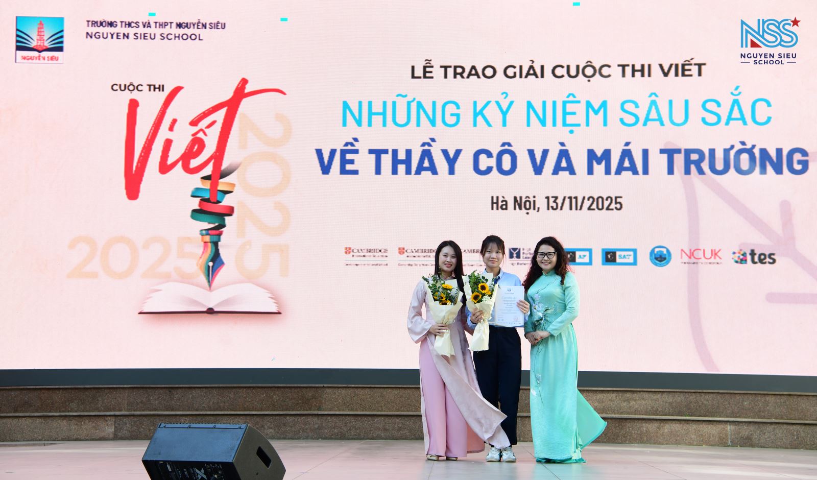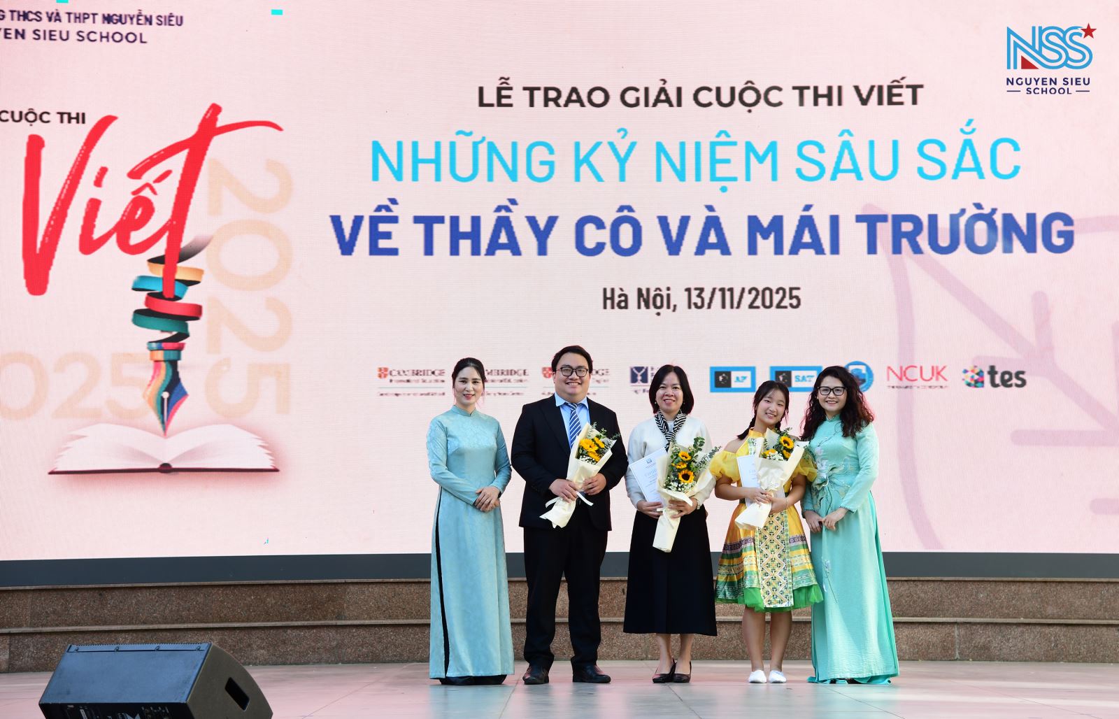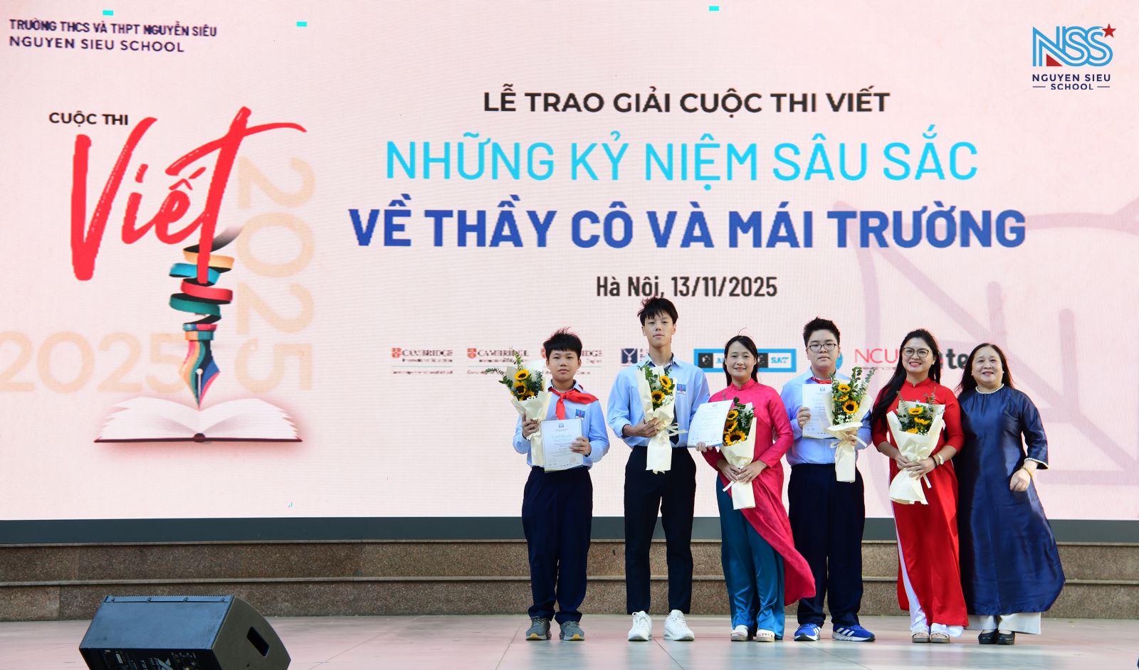 Ngày 13/11, trong khuôn khổ chương trình tri ân thầy cô nhân dịp Ngày Nhà giáo Việt Nam 20/11 mang chủ đề “Người xây những ước mơ”, Trường THCS và THPT Nguyễn Siêu đã vinh danh những bài dự thi xuất sắc trong Cuộc thi viết năm 2025: “Những kỷ niệm sâu sắc về thầy cô và mái trường.”