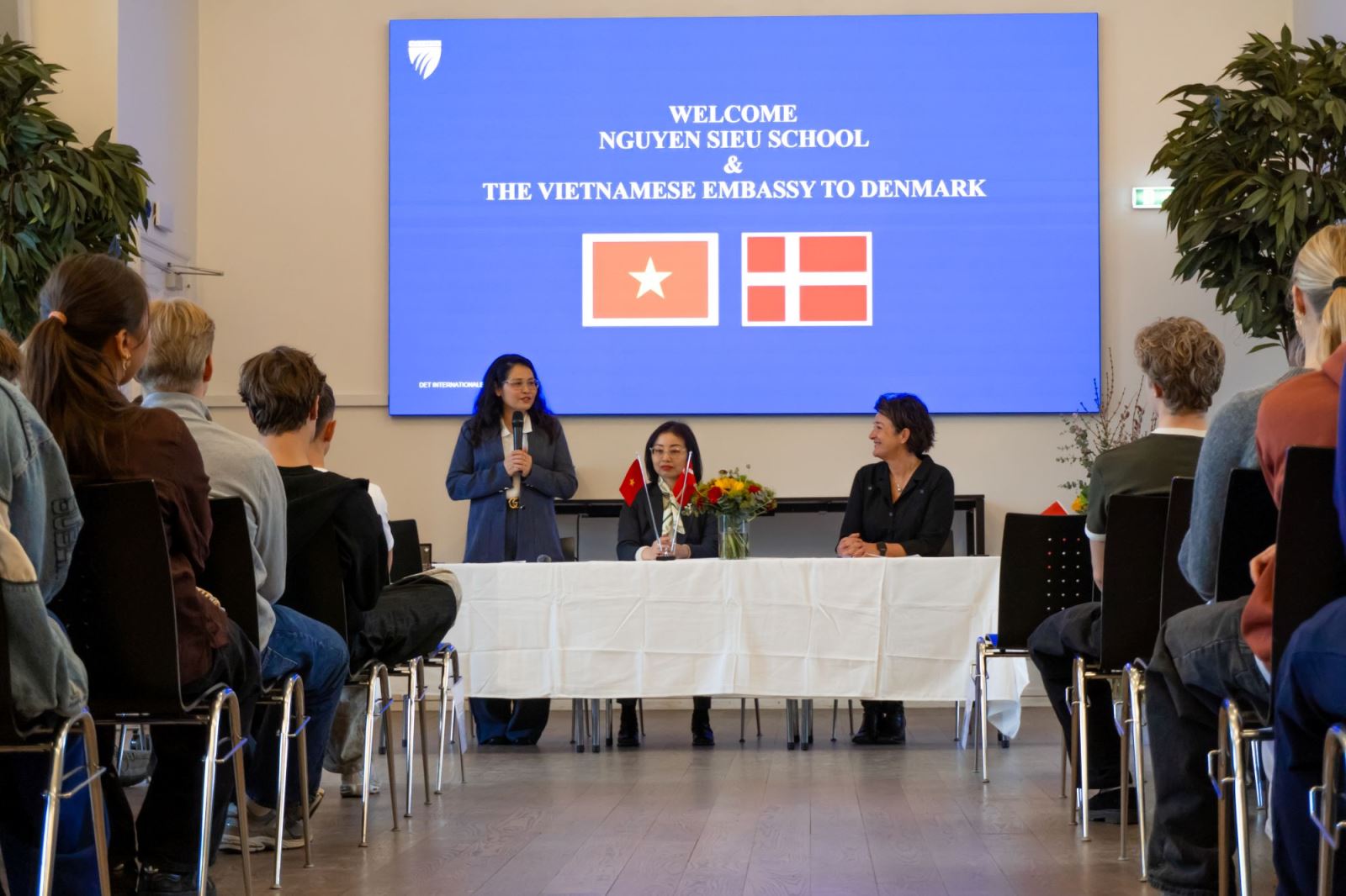 Bên cạnh đó, Chương trình có sự hiện diện trực tiếp của đông đảo giáo viên, học sinh Trường Niels Brock Business College, đồng thời kết nối trực tuyến với các thầy cô giáo Trường Nguyễn Siêu.