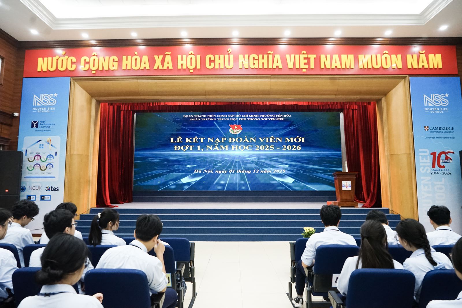Ngày 1/12, Trường THCS và THPT Nguyễn Siêu đã tổ chức Lễ kết nạp Đoàn đợt 1 năm học 2025–2026 cho 124 học sinh – những bạn trẻ đã nỗ lực, phấn đấu và sẵn sàng khoác lên mình màu áo xanh thanh niên đầy tự hào.