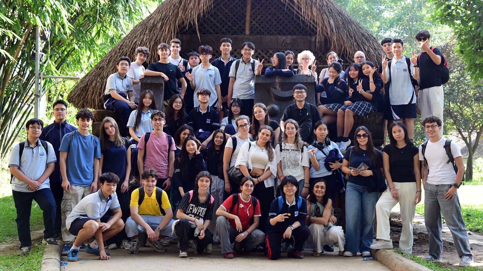Ở Hà Nội, các con học sinh hai trường được dịp tham quan Bảo tàng Dân tộc học, nơi lưu giữ những câu chuyện, hiện vật và không gian trưng bày tái hiện đời sống, phong tục, lễ hội của 54 dân tộc tại Việt Nam. Không chỉ vậy, các con cũng có dịp hiểu hơn những câu chuyện văn hóa - lịch sử khi tới thăm Di tích Nhà tù Hỏa Lò, Hoàng Thành Thăng Long, Bảo tàng Dân tộc học Việt Nam và Làng gốm Bát Tràng.