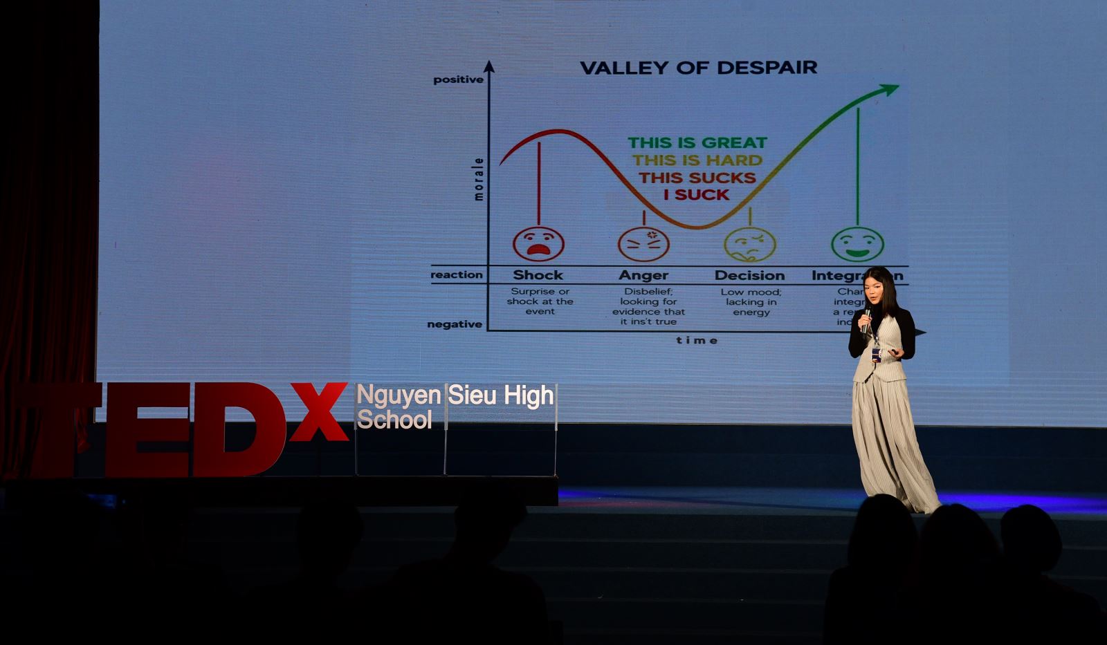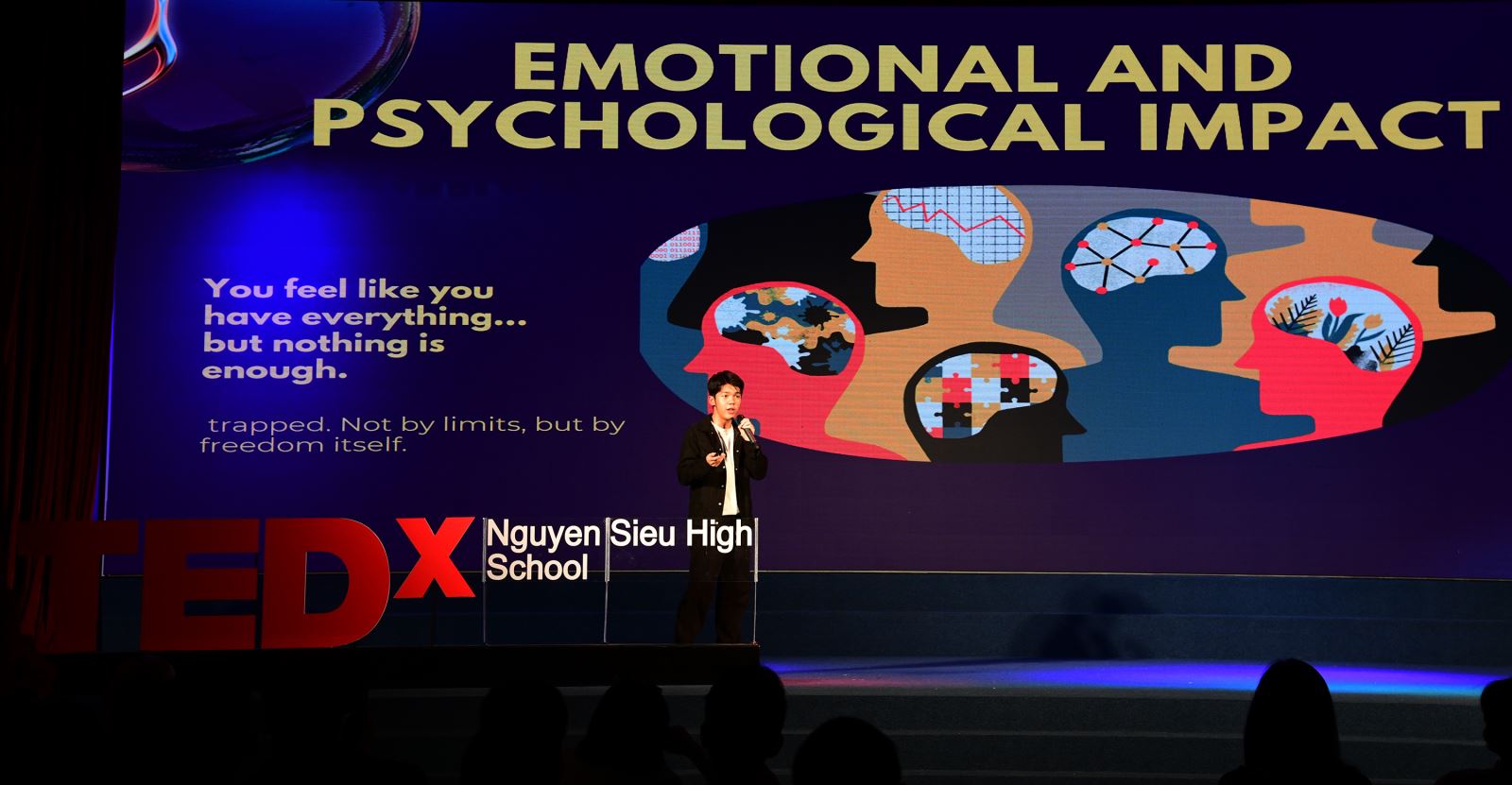 Bài diễn thuyết đầu tiên mang tên “The Paradox of choices” đến từ bạn Lê Đức Anh Trí - Học sinh Trường Hanoi Academy. Anh Trí cho rằng, tự do lựa chọn không chỉ mang đến cơ hội mà đôi khi còn là gánh nặng khi mỗi quyết định đều định hình con người chúng ta. Trong phần trình bày của mình, cậu chia sẻ rằng việc tập trung vào giá trị, thiết lập giới hạn và cam kết với lựa chọn sẽ giúp giảm bớt sự quá tải, đồng thời tạo ra ý nghĩa trong từng quyết định.