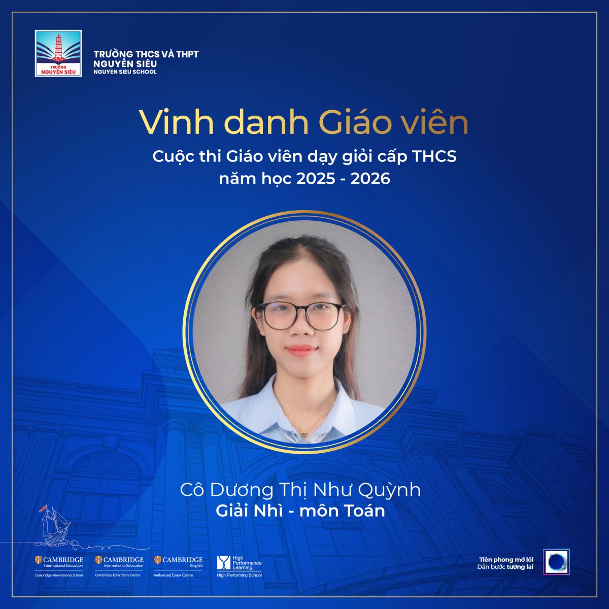 Hai giải thưởng mà cô Trần Thị Hoàng Yến và cô Dương Thị Như Quỳnh đạt được tại Hội thi không đơn thuần là sự ghi nhận thành tích cá nhân, mà còn phản ánh một cách toàn diện: năng lực chuyên môn vững vàng của đội ngũ giáo viên Nhà trường, khả năng đổi mới phương pháp dạy học theo định hướng phát triển năng lực, sự đồng hành, hỗ trợ hiệu quả từ tổ chuyên môn và Nhà trường, và môi trường giáo dục tích cực, nơi sáng tạo được khuyến khích và lan tỏa. Quan trọng hơn, những tiết dạy này đã thể hiện rõ triết lý giáo dục lấy học sinh làm trung tâm, lấy năng lực làm mục tiêu, lấy thực tiễn làm bối cảnh và lấy sáng tạo làm động lực.
