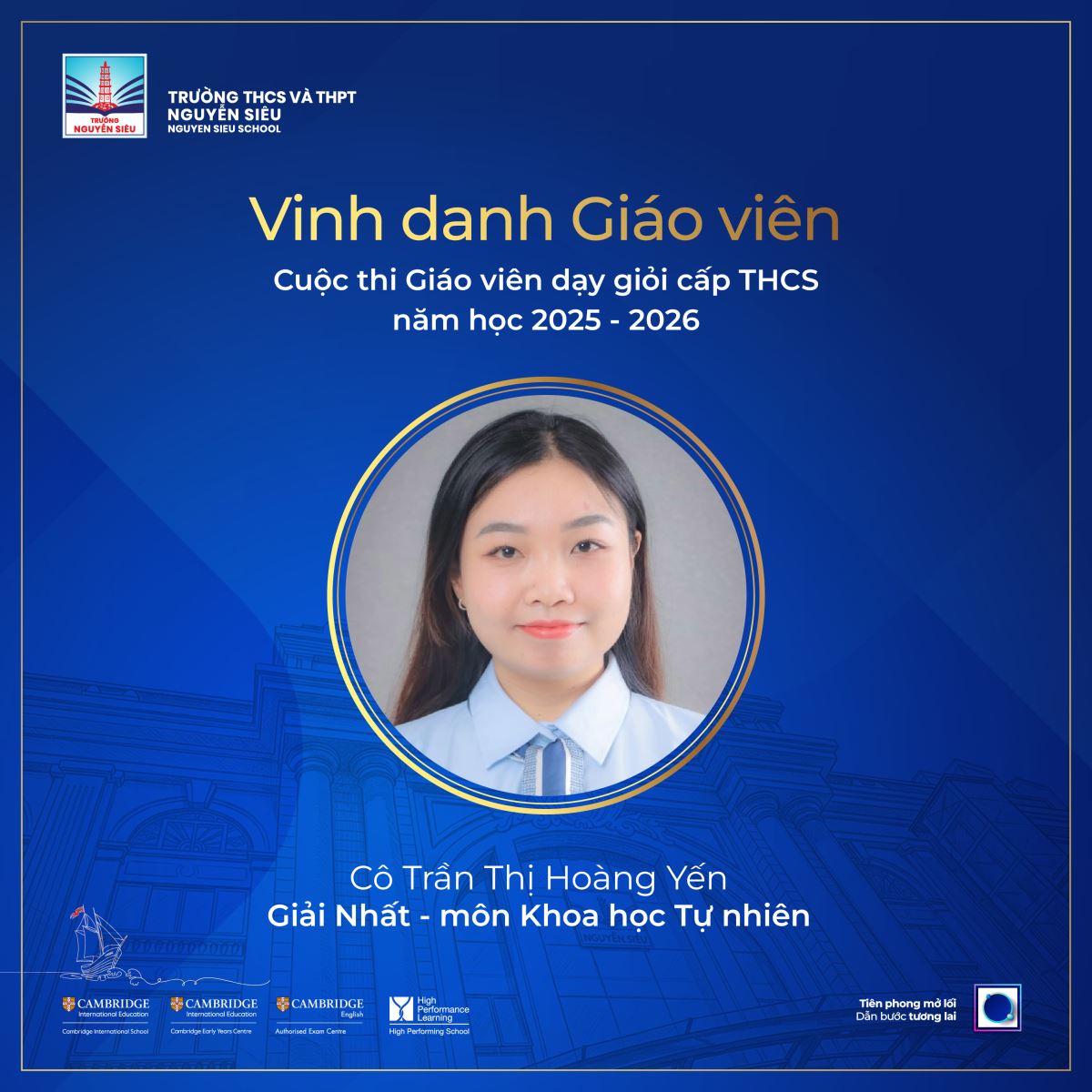 Tại hội thi năm nay, giáo viên Trường THCS và THPT Nguyễn Siêu đã đạt được những kết quả nổi bật: Giải Nhất của cô Trần Thị Hoàng Yến môn Khoa học tự nhiên và Giải Nhì của cô Dương Thị Như Quỳnh môn Toán. Thành tích này không chỉ mang ý nghĩa ghi nhận cá nhân mà còn cho thấy sự chuyển biến thực chất trong tư duy dạy học và tổ chức hoạt động giáo dục theo định hướng phát triển năng lực học sinh.