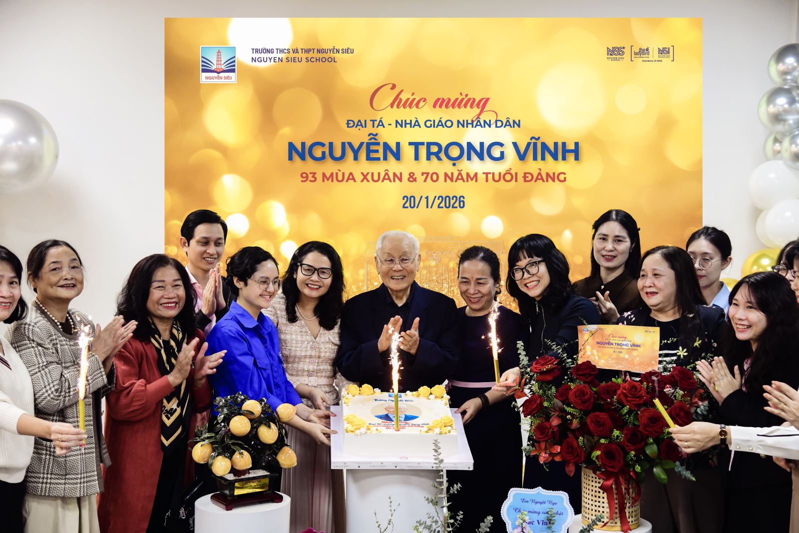 Trước đó, ngày 20/1, trong không khí ấm áp và thân tình, tập thể giáo viên, cán bộ, nhân viên và học sinh Nhà trường đã hân hoan tổ chức lễ mừng sinh nhật dành cho Ông – người Ông kính yêu, điểm tựa tinh thần của nhiều thế hệ thầy và trò Trường Nguyễn Siêu.