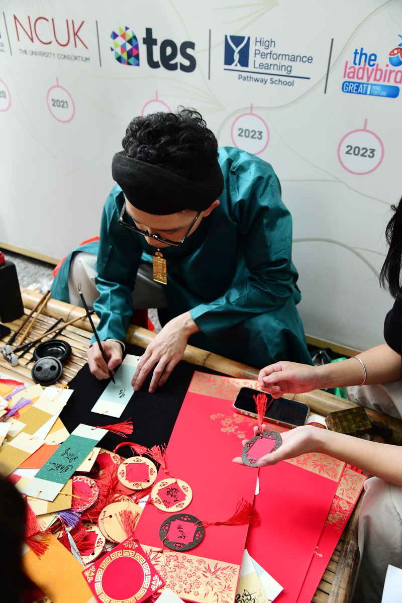 Bên cạnh đó, khu vực ông đồ gieo chữ cũng thu hút đông đảo sự quan tâm, dừng chân để xin những lời chúc may mắn, gửi gắm ước nguyện cho một mùa xuân năm mới. Hòa cùng không khí ấy là không gian đầy sắc màu của triển lãm “Họa sắc xuân” với những tác phẩm đầy tâm huyết của các con học sinh về nét đẹp văn hoá Tết cổ truyền của các dân tộc, các vùng miền trên dải đất Việt Nam.