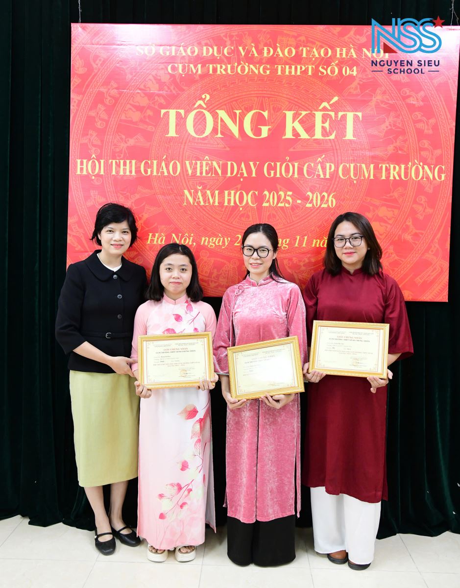 Trong Hội thi giáo viên dạy giỏi cấp Cụm THPT năm học 2025 – 2026, các thầy cô Trường THCS và THPT Nguyễn Siêu đã tiếp tục khẳng định năng lực chuyên môn vững vàng và tinh thần cống hiến cho nghề giáo. Ba giáo viên của Nhà trường đã xuất sắc đạt giải cao ở các bộ môn Ngữ văn, Địa lý và Tin học.