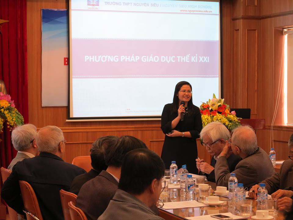 Phát biểu tại buổi lễ, ThS. Nguyễn Thị Minh Thúy hi vọng Chi hội sẽ phát huy được thế mạnh của mình, giúp học sinh luôn ổn định tâm sinh lí, vững vàng, bản lĩnh khi hội nhập. Cũng trong Hội nghị, Hiệu trưởng Nguyễn Thị Minh Thúy giới thiệu về mô hình học Quốc tế của trường Nguyễn Siêu và cùng đoàn tham quan cơ sở vật chất nhà trường.