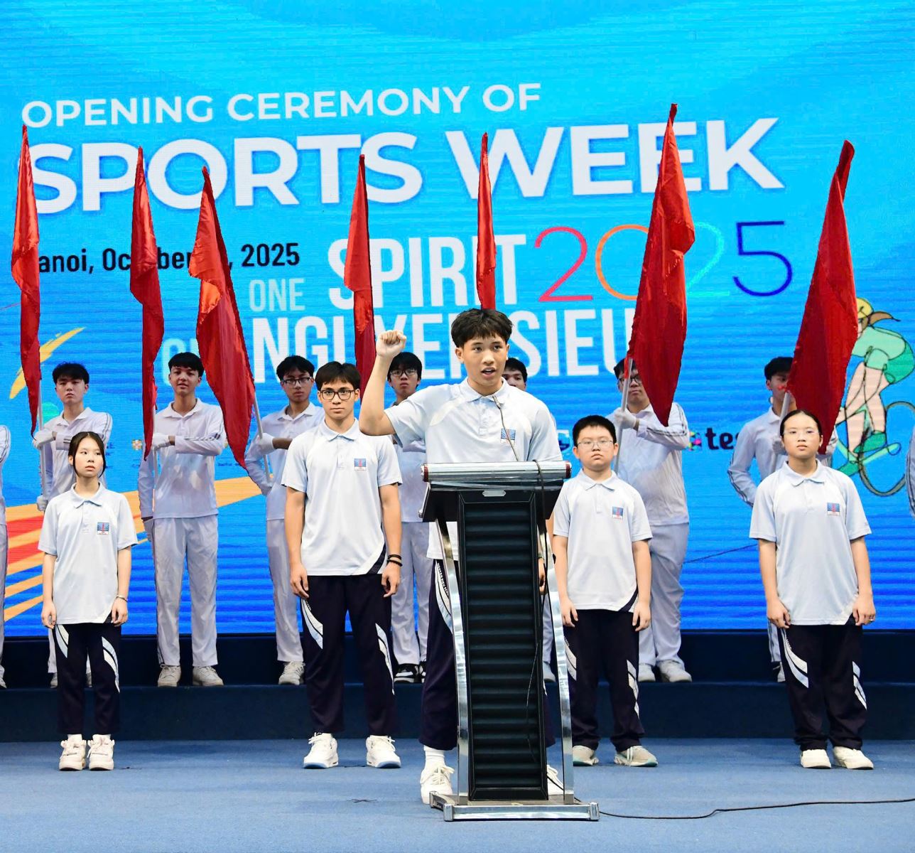 Đại diện cho hơn 1.700 vận động viên từ các khối lớp chính thức bước vào mùa giải, bạn Nguyễn Hồng Khôi (Lớp 12AL1) xin hứa: “Thi đấu hết mình với tinh thần trung thực, cao thượng, nỗ lực vượt qua mọi giới hạn, tôn trọng điều lệ, trọng tài, đối thủ và đồng đội”.