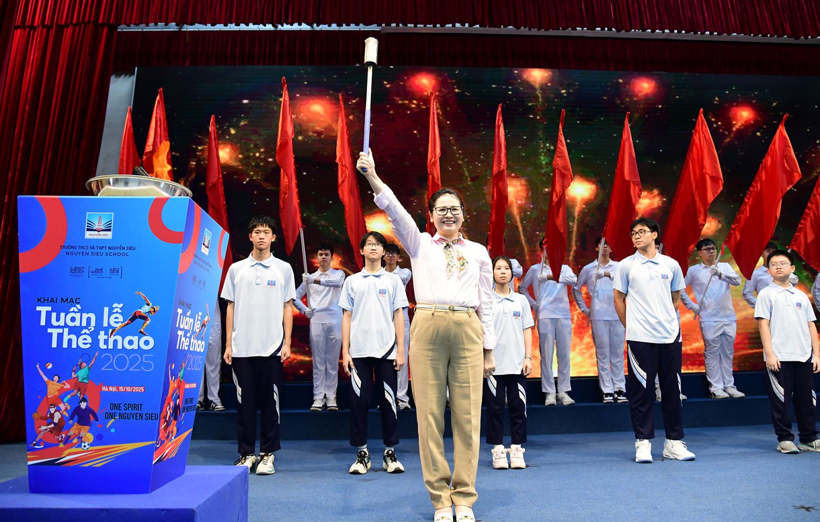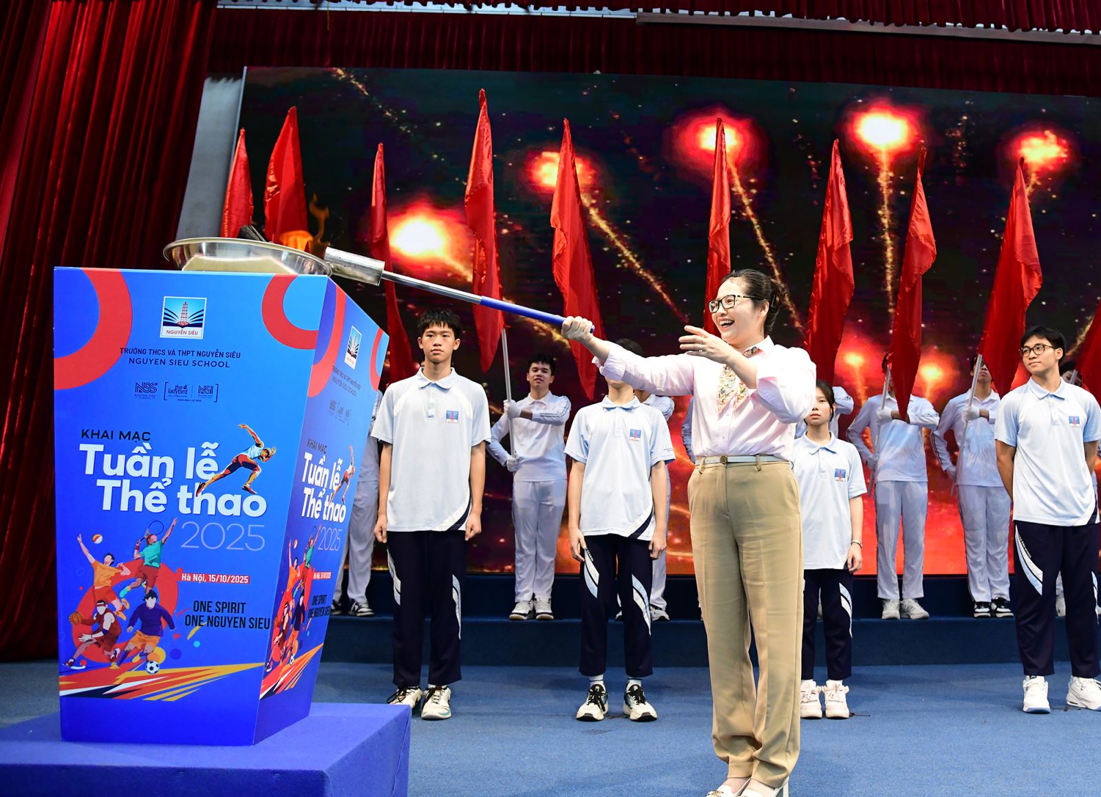 Phát biểu trong Lễ Khai mạc Tuần Thể thao 2025, cô Nguyễn Thị Minh Thúy - Hiệu trưởng Trường THCS và THPT Nguyễn Siêu, gửi gắm kỳ vọng: “Với chủ đề One Spirit - One Nguyễn Siêu, cô mong rằng, mỗi trận đấu trong Tuần Thể thao 2025 không chỉ là nơi để các con rèn luyện sức khỏe và thể hiện tài năng, mà còn là sân chơi gắn kết - nơi tinh thần đoàn kết, fair-play, sự sẻ chia được lan toả.