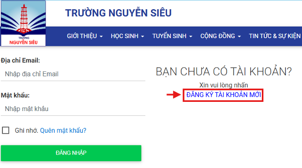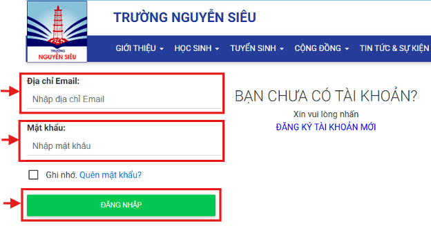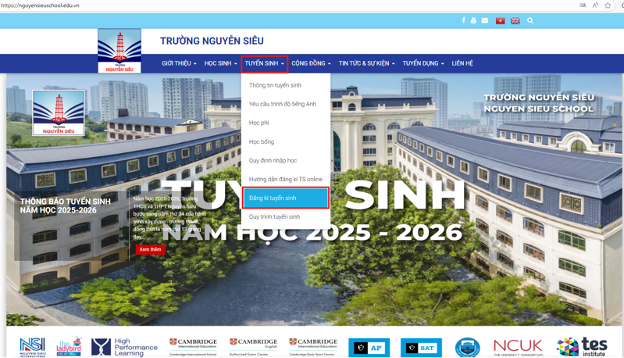 - Cha mẹ học sinh (CMHS) truy cập vào trang thông tin điện tử của Trường Nguyễn Siêu theo đường dẫn www.nguyensieuschool.edu.vn