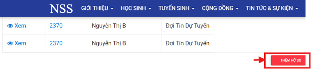 - Khi đã đăng nhập thành công, phụ huynh Click vào Thêm hồ sơ để thêm mới.