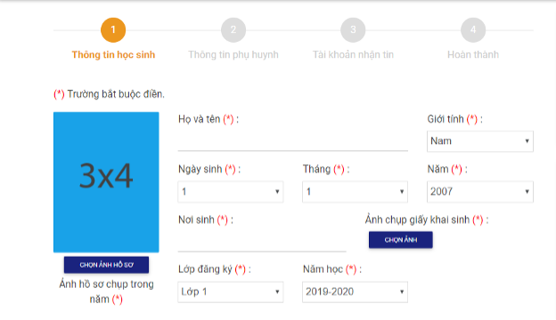 - Cha mẹ học sinh điền đầy đủ thông tin có thể Click vào nút TIẾP THEO
