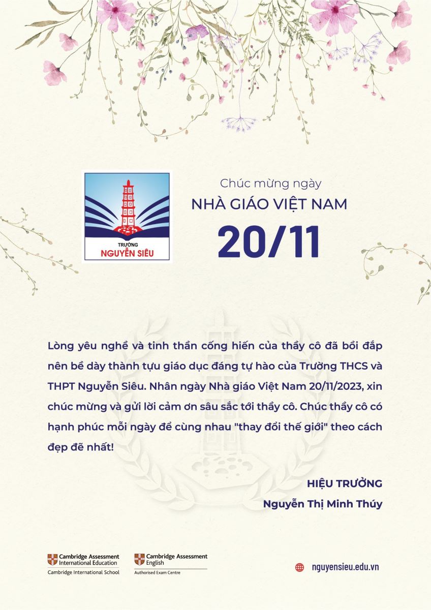 Trong mùa Tri ân Thầy Cô đang diễn ra trên khắp dải đất Việt Nam với thật nhiều khoảnh khắc xúc động, sáng Thứ Bảy, ngày 18/11/2023, Hội đồng giáo dục Trường THCS và THPT Nguyễn Siêu cũng tổ chức Lễ kỉ niệm 41 năm ngày Nhà giáo Việt Nam trong không khí trang trọng mà ấm áp.