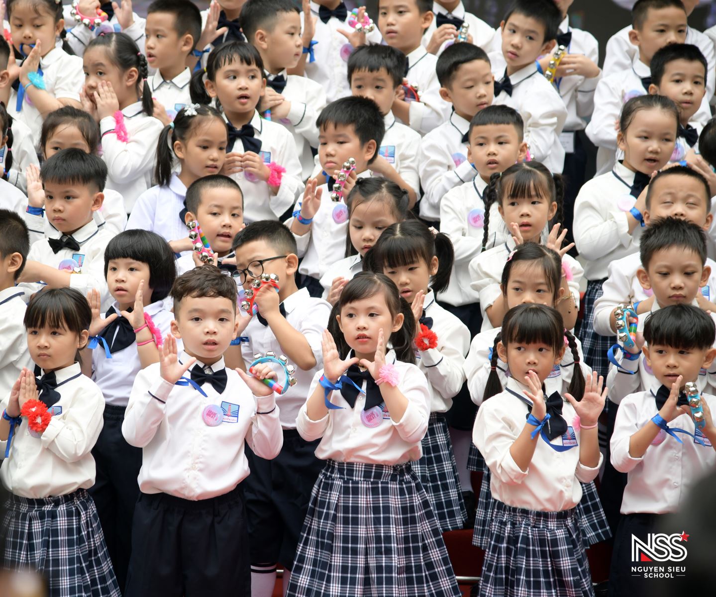 Đối với các con học sinh lớp 1, ngày Khai giảng đầu tiên vừa lạ lẫm vừa xen chút lo lắng khi các con rảo bước trên con đường học thuật trong sự đón chào, tiếng vỗ tay nồng hậu của các anh chị, các vị khách quý và toàn thể cán bộ, giáo viên, nhân viên nhà trường. Các con đang từng bước ghi dấu chân mình nơi mái trường Nguyễn Siêu thân yêu. Cổng trường mở ra, đón chào các con bằng vòng tay ấm áp yêu thương.