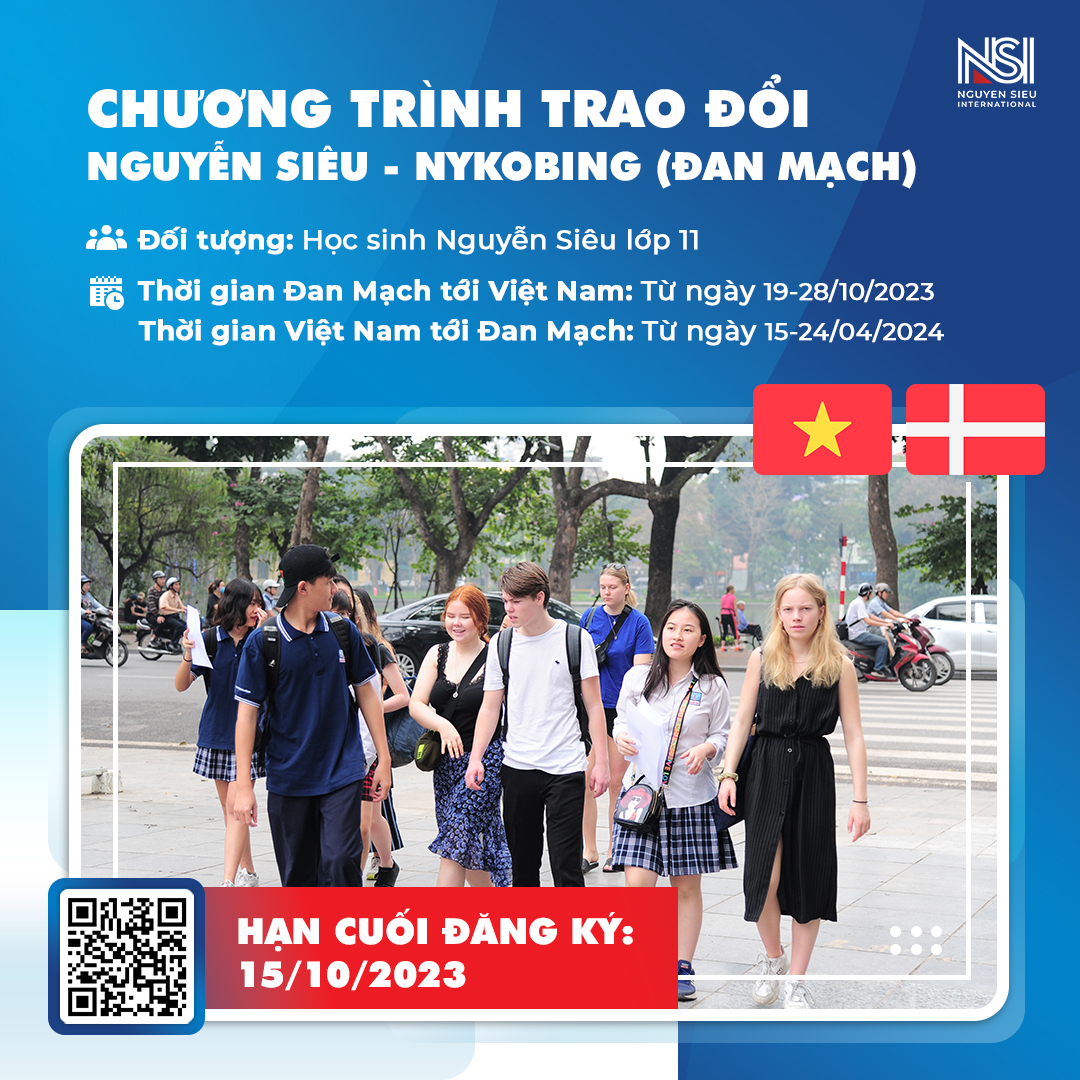 Trường Nykøbing Katedralskole tọa lạc ở đảo Nykøbing Falster - một hòn đảo xinh đẹp cách thủ đô Copenhagen của Đan Mạch chỉ hơn 1 tiếng đồng hồ lái xe. Sau nhiều năm gián đoạn, chương trình trao đổi học sinh giữa trường Nguyễn Siêu và trường Nykobing năm học 2023-2024 lần thứ tư được tổ chức nhằm tạo điều kiện cho học sinh và giáo viên hai trường trao đổi kiến thức, kinh nghiệm cũng như tăng cường sự hiểu biết về đất nước và con người của hai quốc gia. Các con hai trường sẽ được trải nghiệm cuộc sống và nền văn hóa hai nước sâu sắc, được ở nhà homestay để mở mang kinh nghiệm sống trong một môi trường mới và tìm hiểu văn hóa nước bạn.