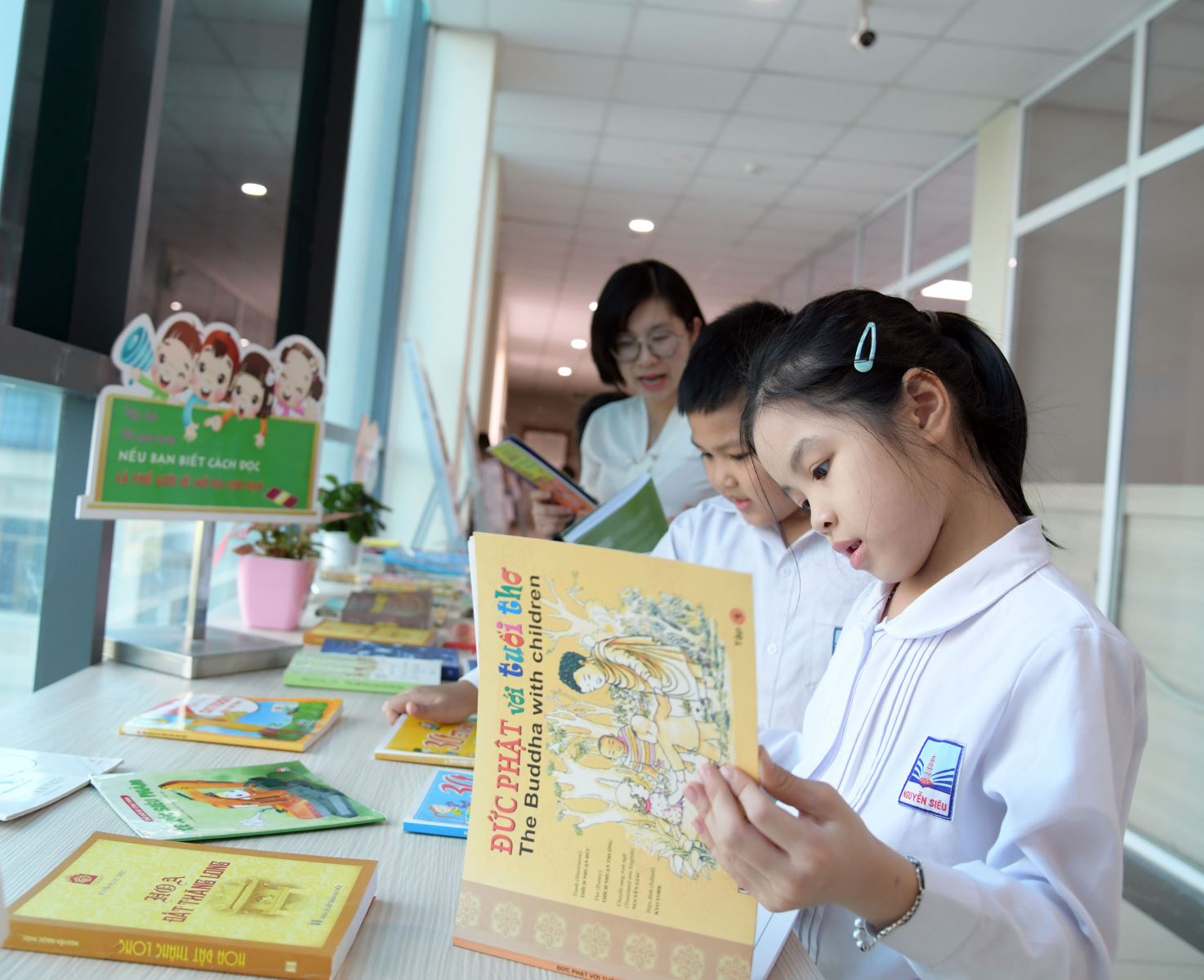 Các em học sinh thích thú với các hoạt động tại Thư viện.