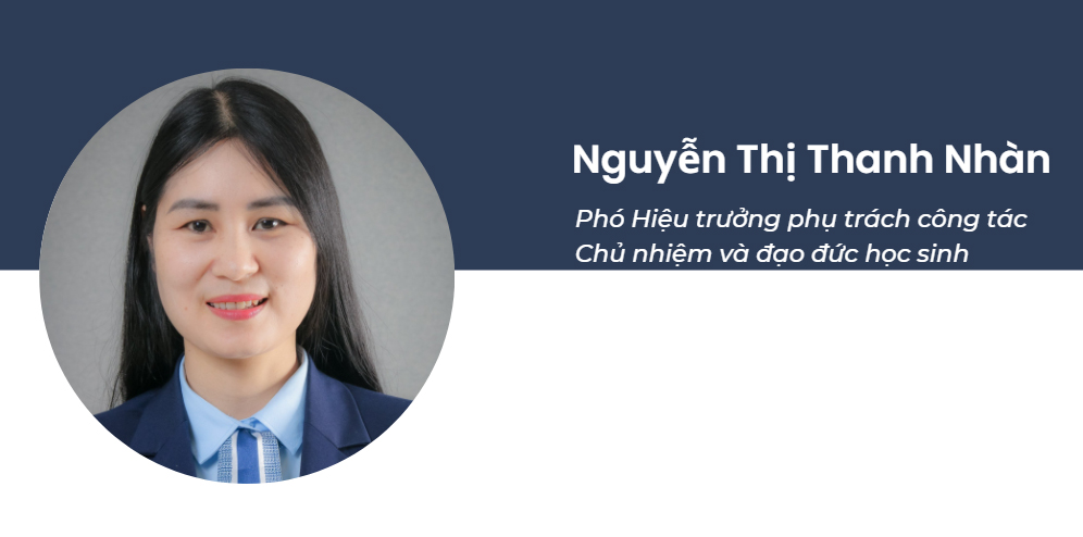 Th.S Nguyễn Thị Thanh Nhàn – Phó Hiệu trưởng phụ trách công tác Chủ nhiệm và Đạo đức học sinh: gắn bó với trường từ năm 2006, cô từng giành giải Nhất thành phố thiết kế giáo án tích hợp và thi giáo viên giỏi môn Giáo dục công dân, giáo viên chủ nhiệm xuất sắc cấp thành phố, có hàng chục sáng kiến kinh nghiệm và danh hiệu Chiến sĩ thi đua cấp cơ sở, là Ủy viên Hội đồng thẩm định Tài liệu hướng dẫn học môn GDCD của Bộ Giáo dục – Đào tạo.