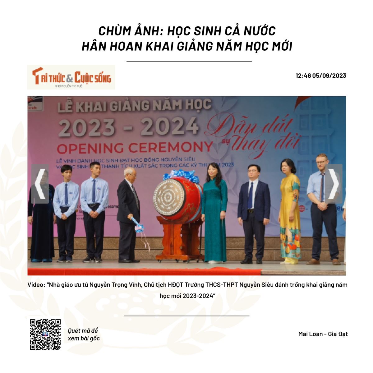 Tự hào lưu giữ và giới thiệu những phóng sự, tin bài về ngày Khai trường mở đầu cho một thời kỳ mới của Trường Nguyễn Siêu hôm nay. Độc giả có thể click vào từng ảnh hoặc quét mã QR có trong ảnh để đọc/ xem bài gốc.