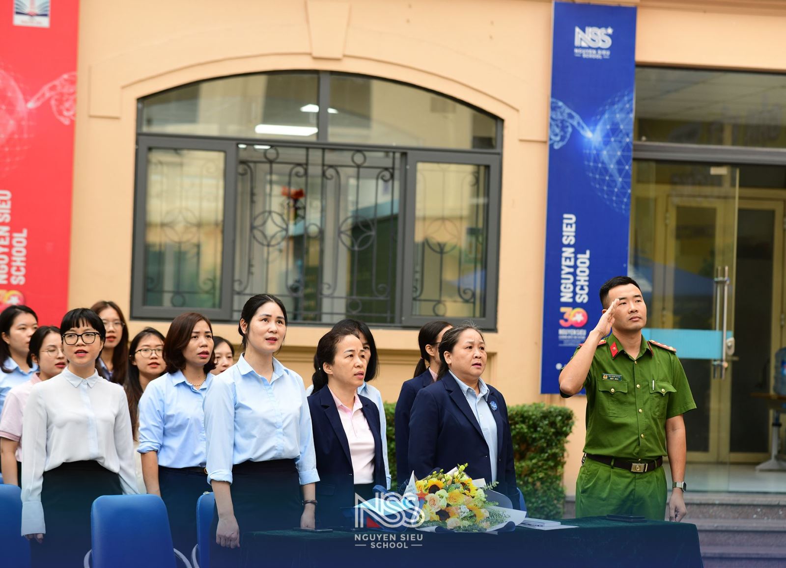 Đồng chí Mai Danh Giang tham dự lễ Chào cờ và phổ biến kiến thức PCCC cho học sinh Nguyễn Siêu