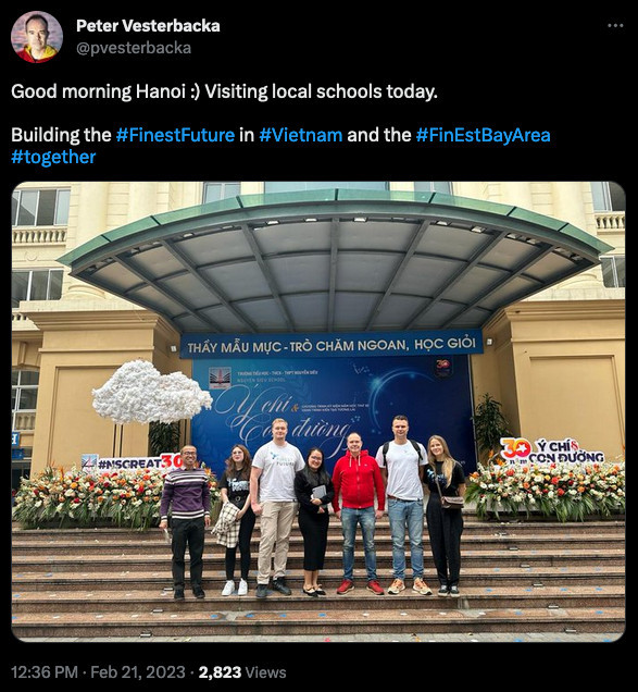 Tỷ phú Peter Vesterbacka đăng ảnh đến thăm trường Nguyễn Siêu trên trang twitter cá nhân và chia sẻ về kế hoạch của Finest Future trong tương lai