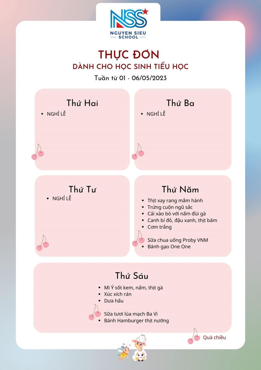 Thực đơn Tuần 01-06/5/2023