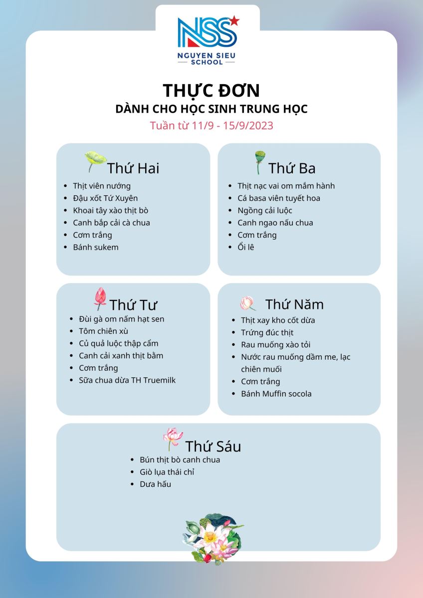 THỰC ĐƠN TUẦN 11/8 - 15/8/2025