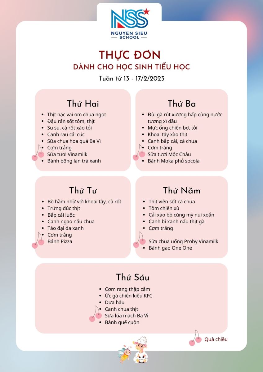 Thực đơn Tuần 13-17/2/2023