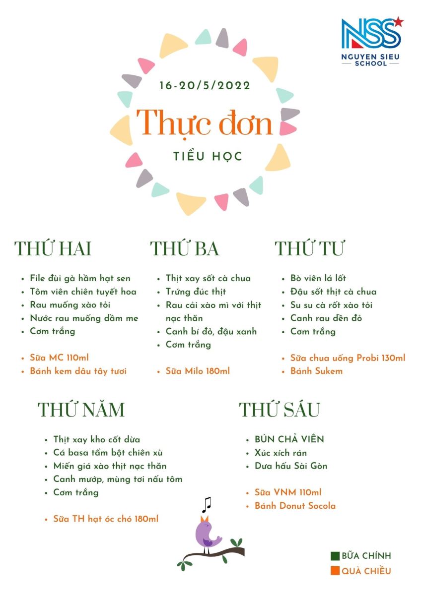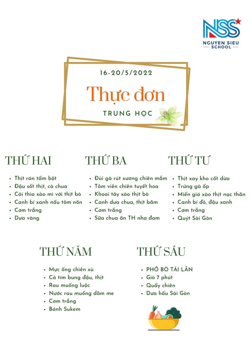 THỰC ĐƠN TUẦN 19/5-23/5/2025