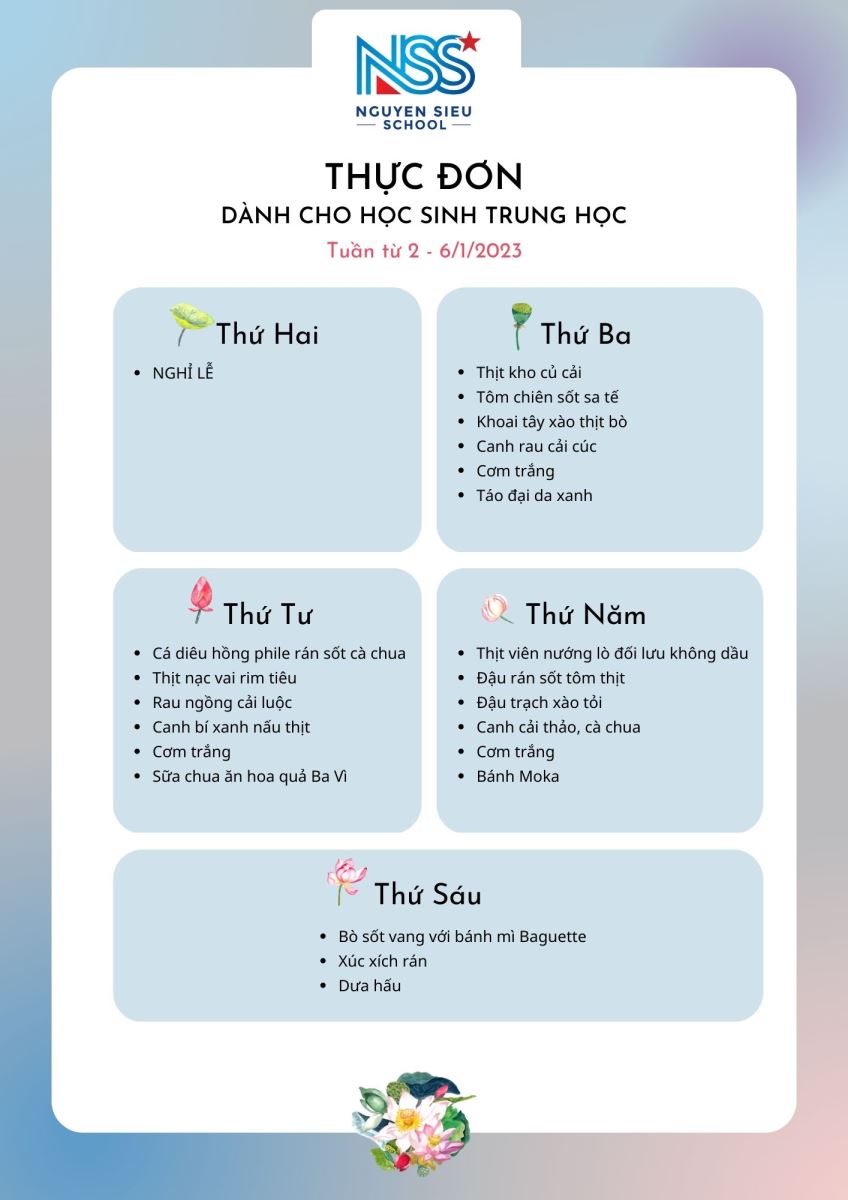 THỰC ĐƠN TUẦN 5/5 - 9/5/2025