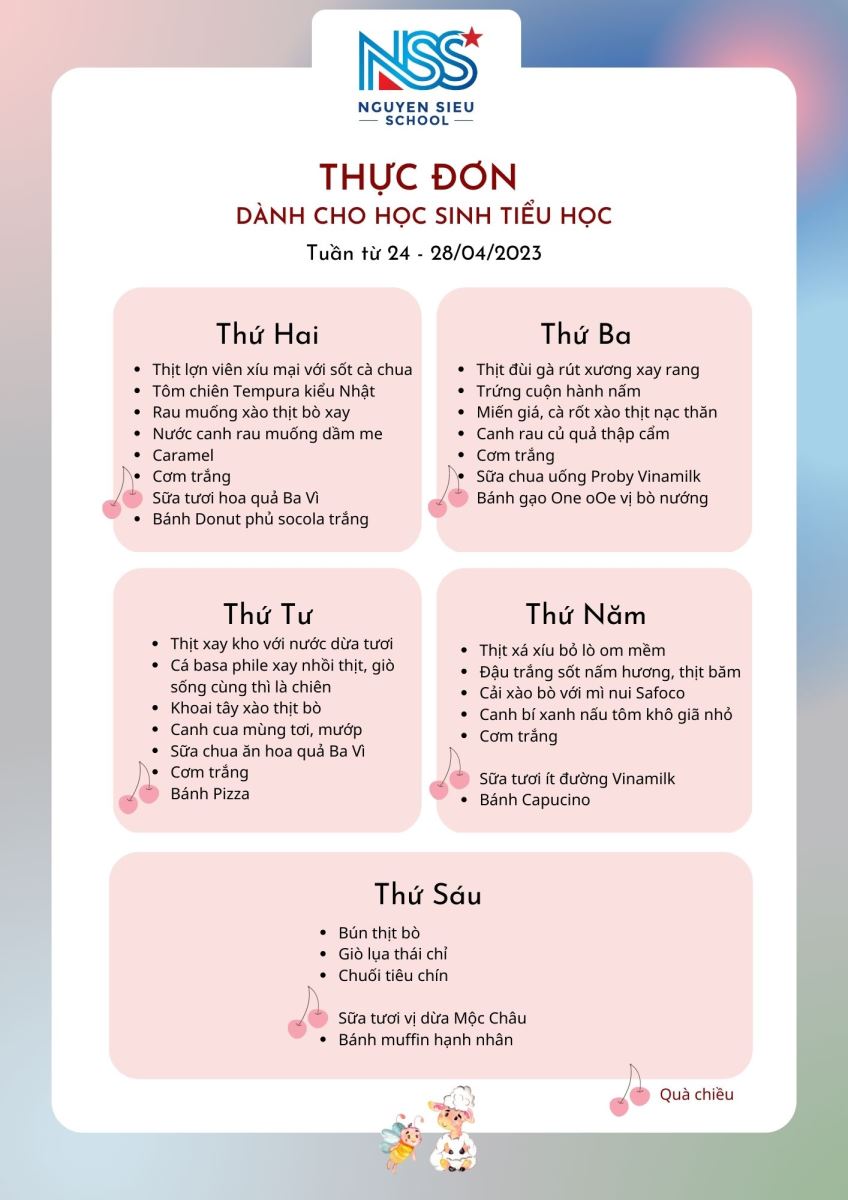 THỰC ĐƠN TUẦN 5/5 - 9/5/2025