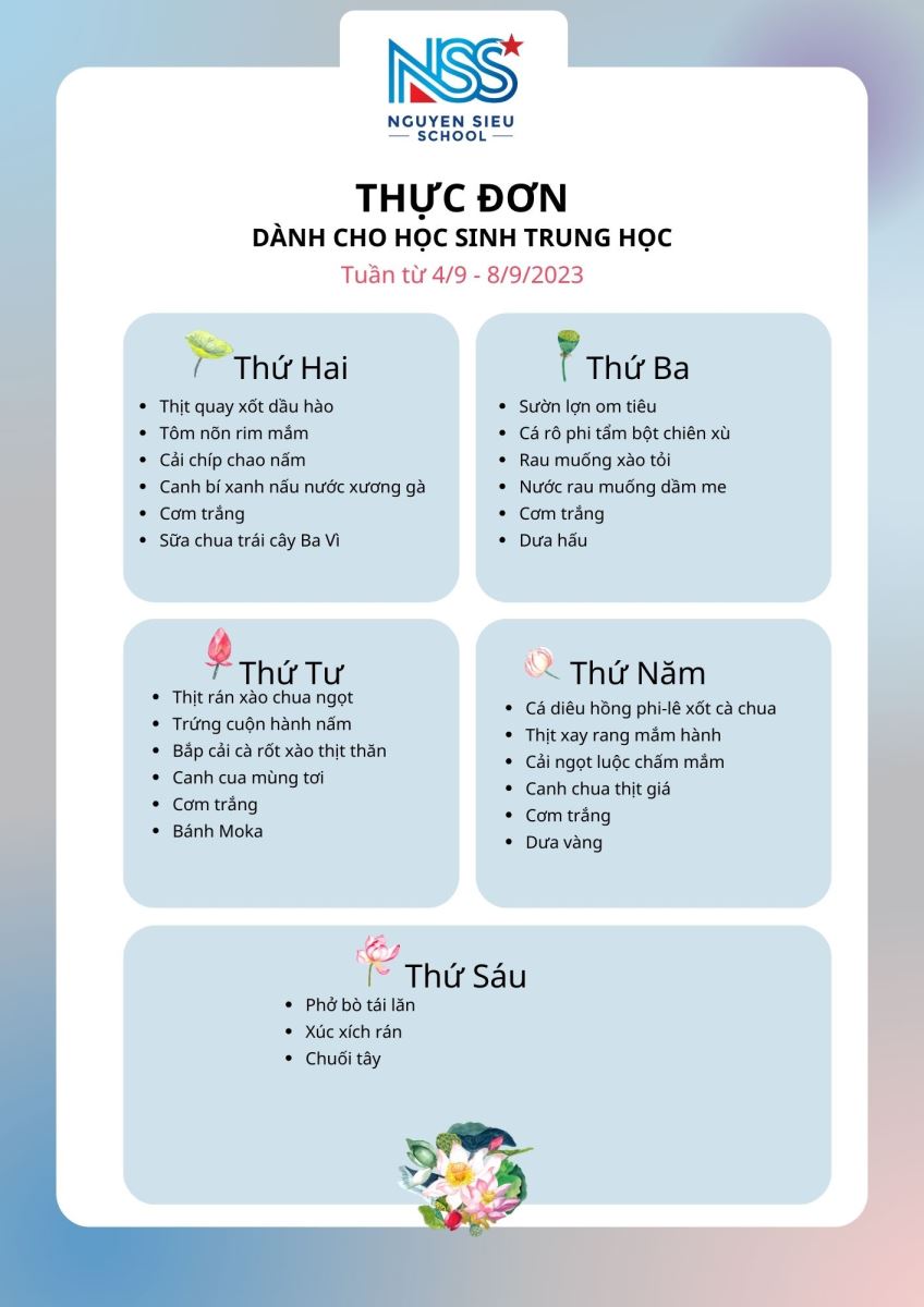 Thực đơn tuần 4/9 - 8/9/2023