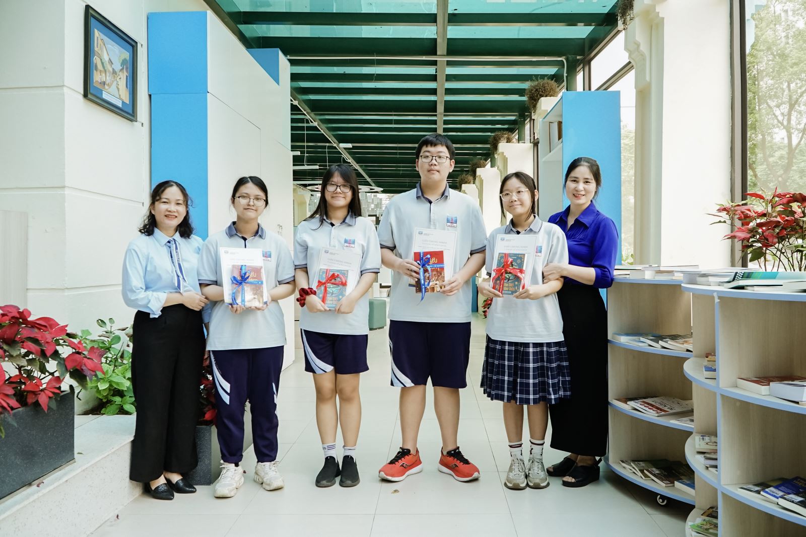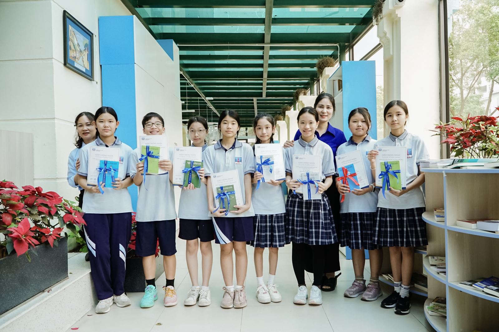 Tại buổi Lễ, đại diện Ban Lãnh đạo Nhà trường đã trực tiếp trao giấy chứng nhận và phần thưởng cho 4 học sinh đạt giải Nhất, 5 học sinh đạt giải Nhì và 16 học sinh đạt giải Ba. Đây chính là sự ghi nhận xứng đáng dành cho tinh thần sáng tạo và niềm đam mê đọc sách mà các con đã thể hiện xuyên suốt cuộc thi, đồng thời góp phần lan tỏa nét đặc sắc trong văn hóa đọc trong toàn trường.