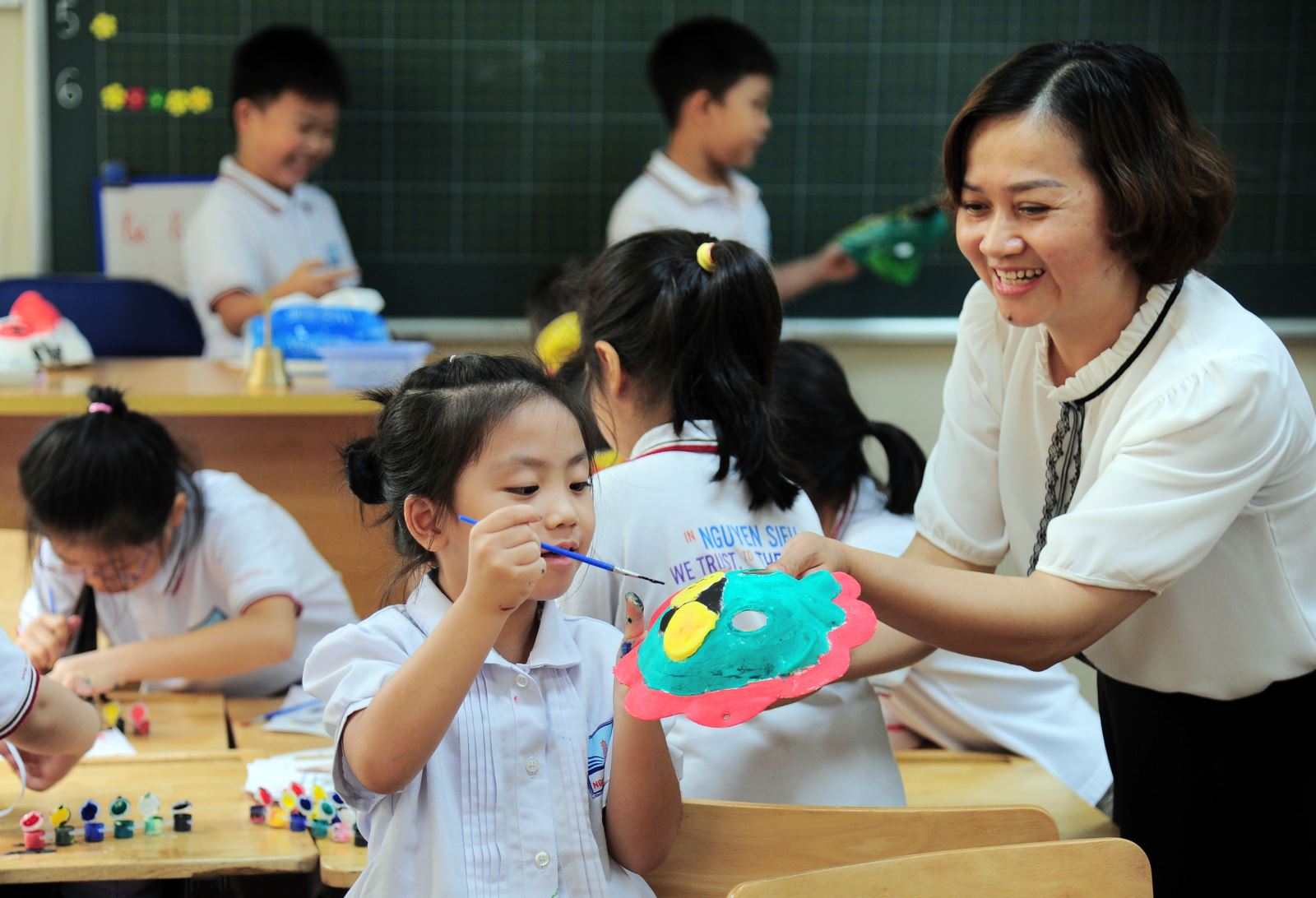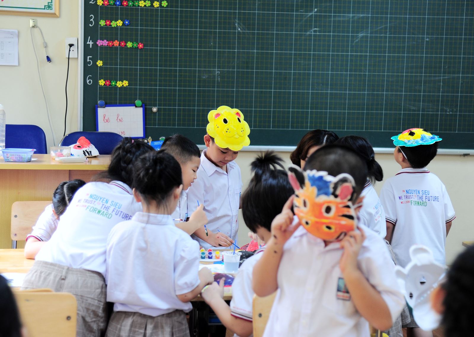 Các lớp 1 tổ chức làm mặt nạ truyền thống với màu nước: