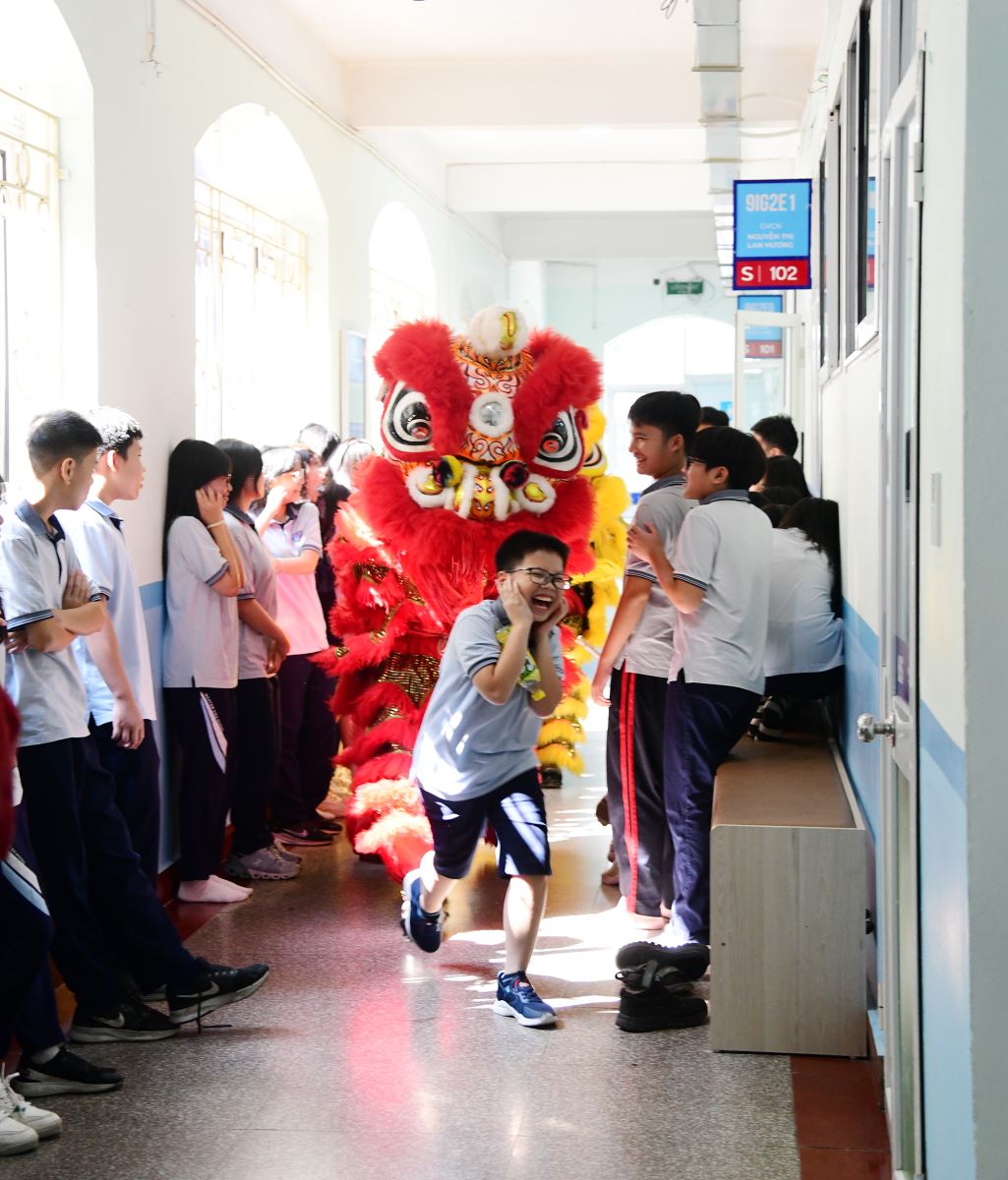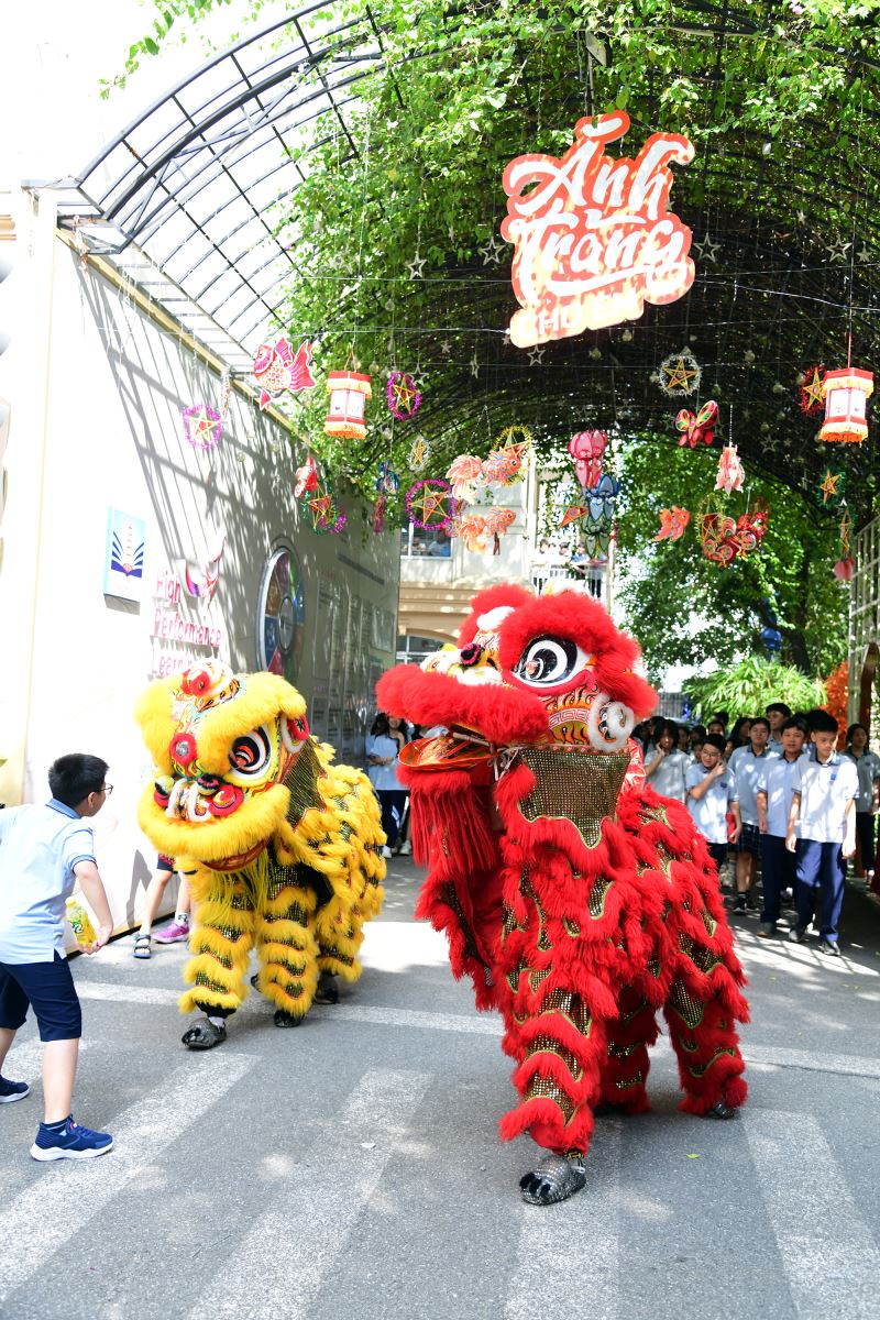 Để chuẩn bị cho Chương trình, Nhà trường đã trang trí khu vực Vườn Quốc tế với sắc màu rực rỡ của cờ hoa, đèn lồng,… Ngay khi tiếng chuông báo giờ ra chơi vang lên, tiếng trống lân rộn rã mở màn cho màn múa lân sư rồng truyền thống, khơi dậy niềm háo hức trong ánh mắt của các con học sinh, mang theo tiếng reo hò của các con khắp các dãy hành lang lớp học.