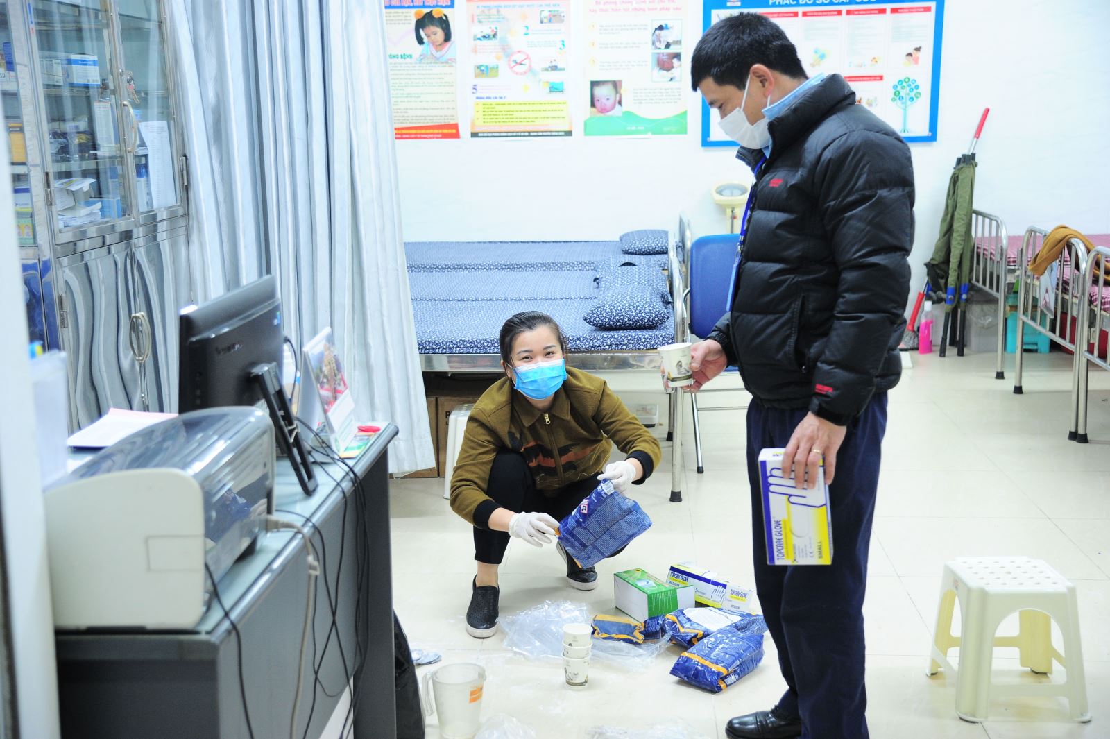 Phòng Y tế nhà trường pha chế và cấp dung dịch sát khuẩn cho các bộ phận