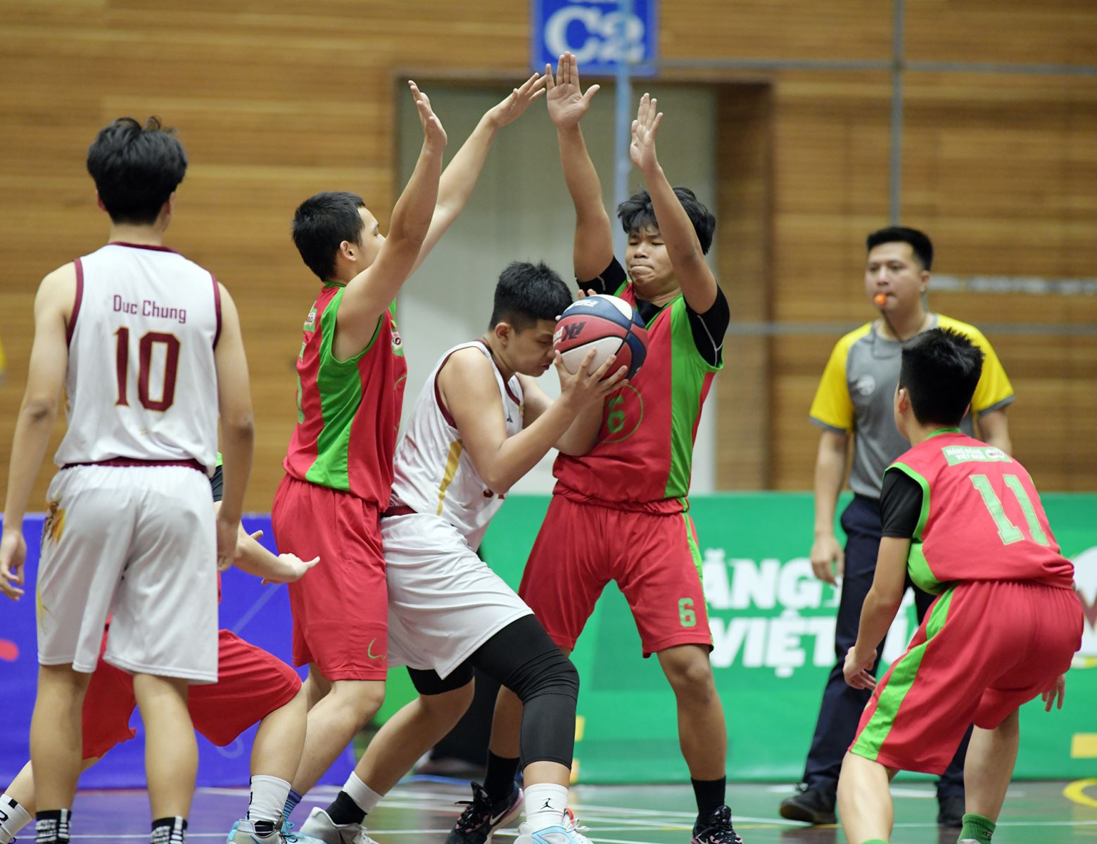 Đội tuyển bóng rổ nam Nguyễn Siêu sớm bắt nhịp bán kết với một thế trận tưng bừng, liên tục dứt điểm thành công ở những pha đột phá lên rổ 2 điểm. Với lợi thế về tâm lý và tỉ số, các chàng trai áo đỏ cũng trình diễn nhiều cú ném 3 điểm xuất thần.