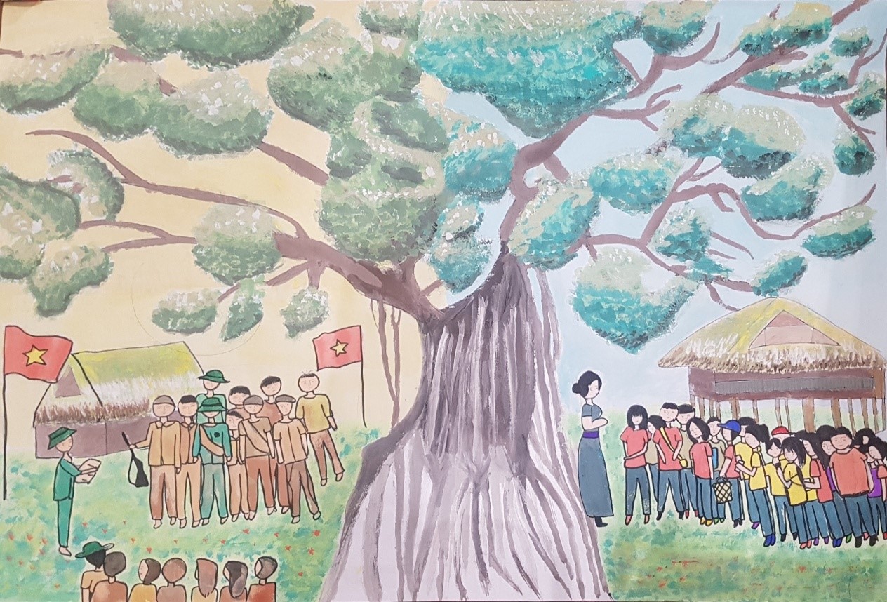 Bài viết và tranh vẽ tự thiết kế, dàn trang của học sinh lớp 12 Nguyễn Siêu sau chuyến đi trải nghiệm tại ATK Định Hóa (Thái Nguyên) và Đình Tân Trào (Tuyên Quang).