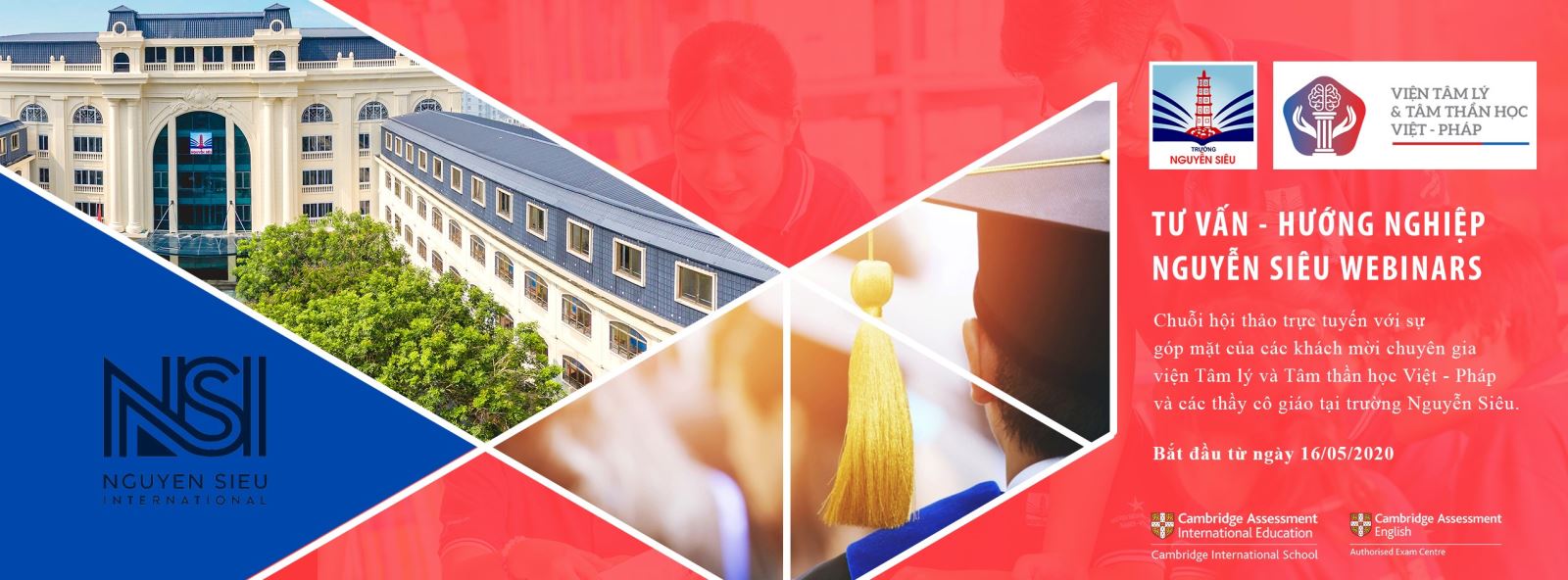 Loạt hội thảo trực tuyến với cha mẹ học sinh và học sinh xoay quanh lộ trình học tập và xu hướng nghề nghiệp, cuộc sống du học tại Anh và Châu Âu, Mĩ, Canada, Úc, New Zealand; chương trình dự bị đại học, kĩ năng dành cho du học sinh... sẽ được Trường Nguyễn Siêu cùng các chuyên gia trong và ngoài nước tổ chức hoàn toàn miễn phí trên nền tảng webinars.