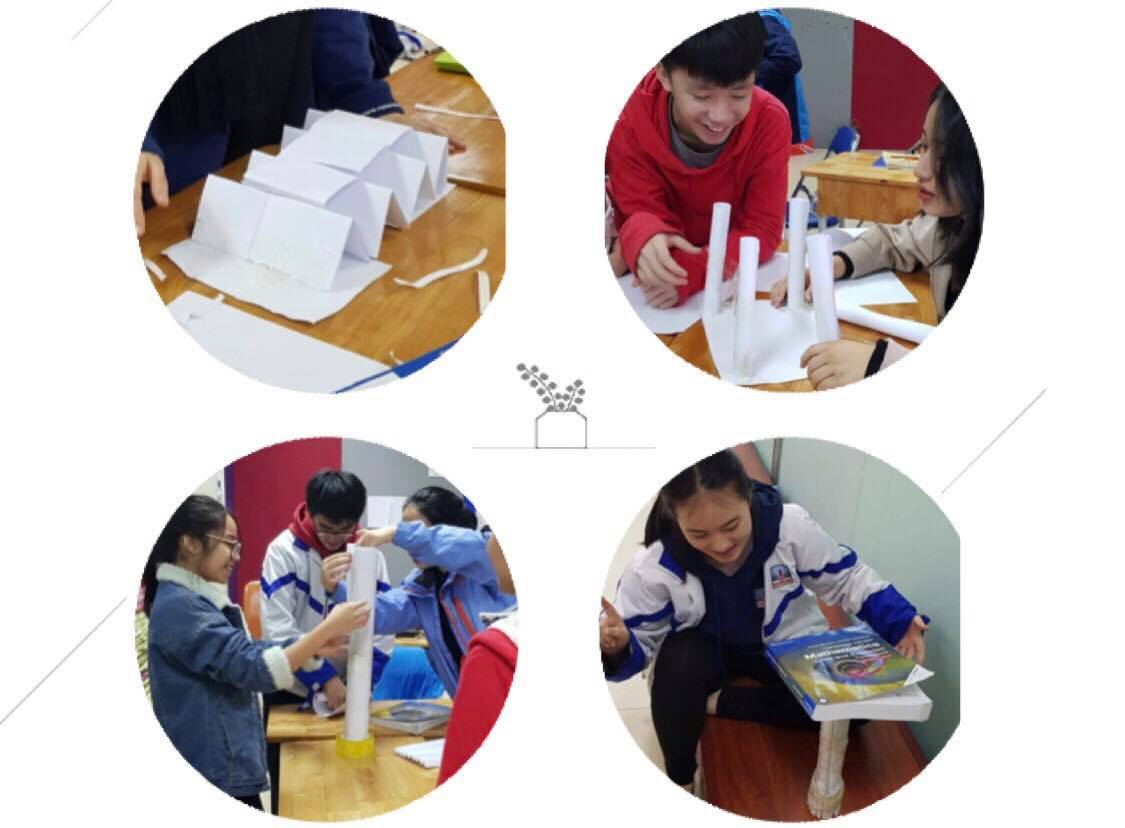 Trong các tiết Maths (Toán bằng tiếng Anh), HS các lớp 10IG2S1, 10IG2S2 và 11AS đã trải qua thử thách xây tháp cao nhất giữ được nhiều cuốn sách nhất với chỉ 20 tờ giấy A4 và băng dính.